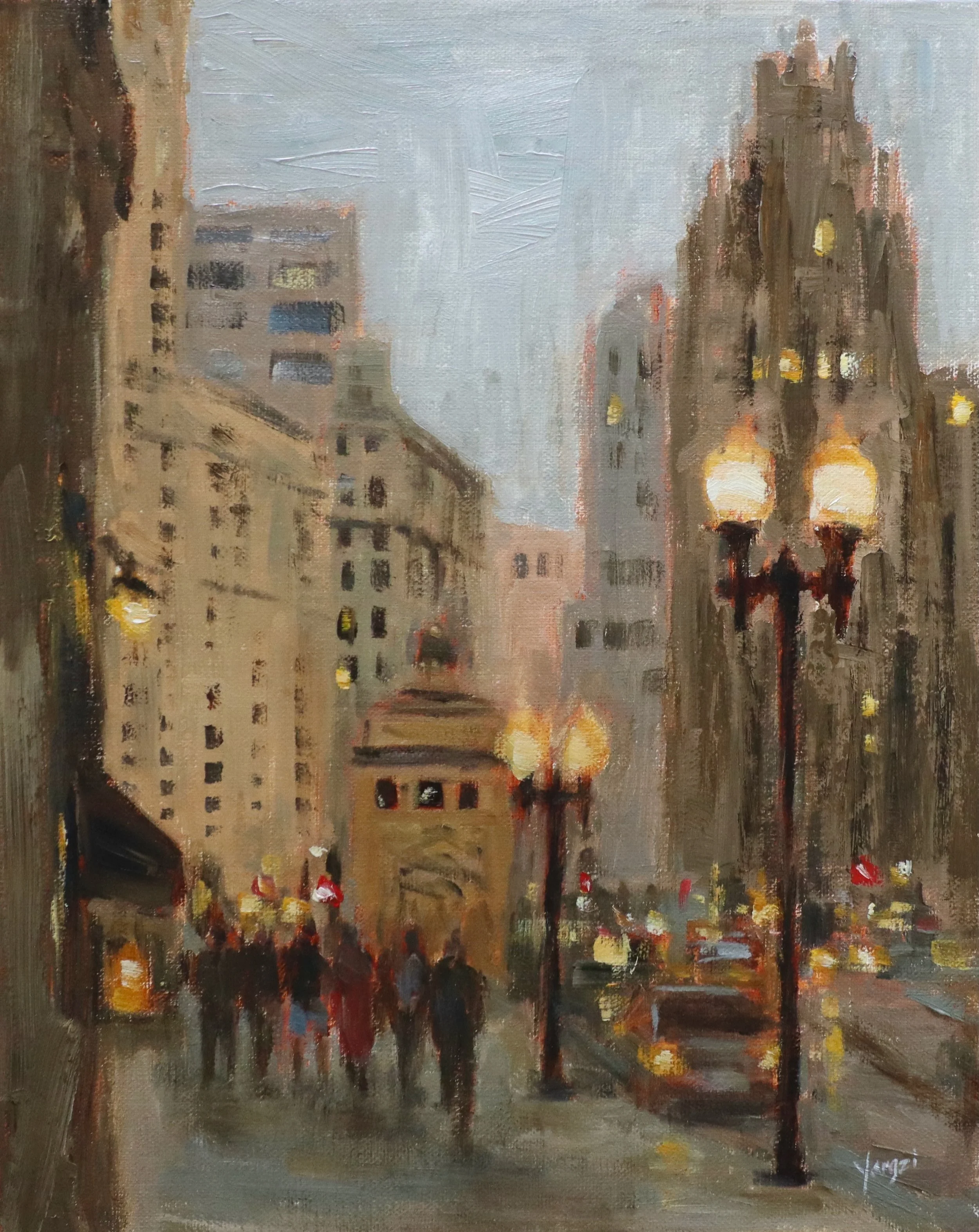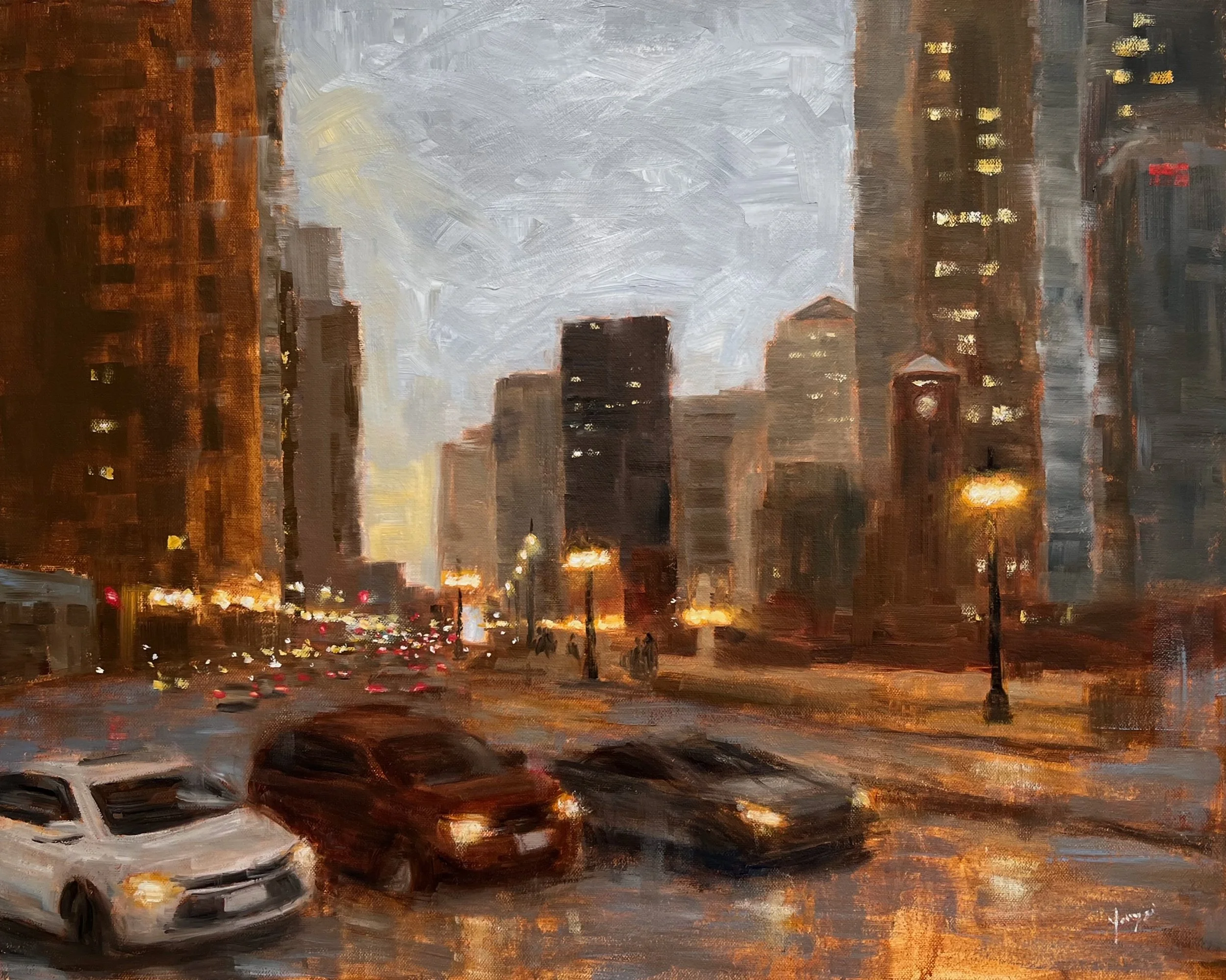 Glow on Michigan Ave, Oil on panel, 16"x20"