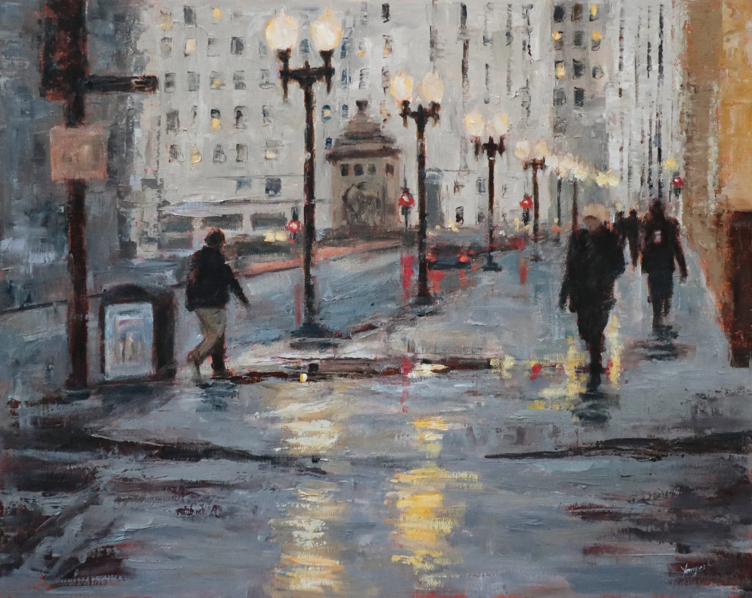Where Lights Meets Rain, Oil on Canvas, 20"x20"